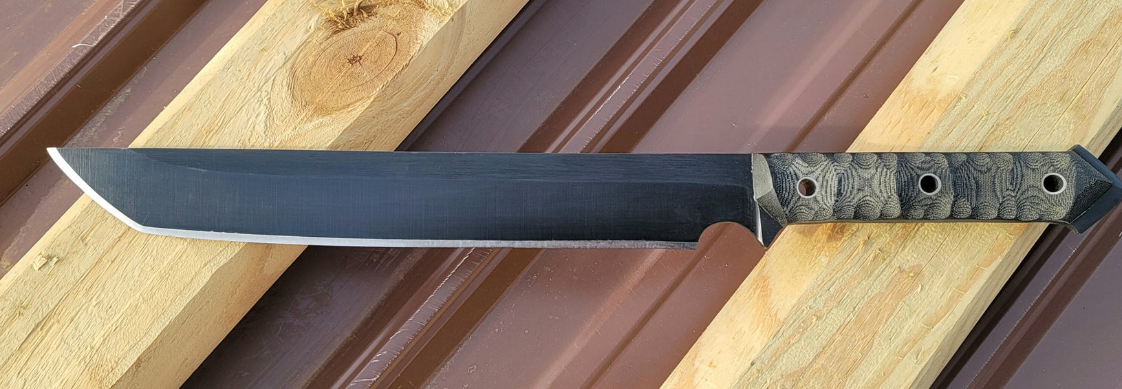 While it's hard to put into a specific category, it fits the bill as a large Japanese style knife (tanto), or in some martial arts' circles, the Ronin would be considered a short sword. I designed this to be a workhorse of a knife. It will function well in the woodsman/bushcraft community for processing materials, and yet is light and sharp enough for detailed tasks. For my fellow martial artists, the multi-use applications are evident from tip to the striker pommel. The high flat grind balances the blade well. It is a responsive, large tool that will serve you well.
